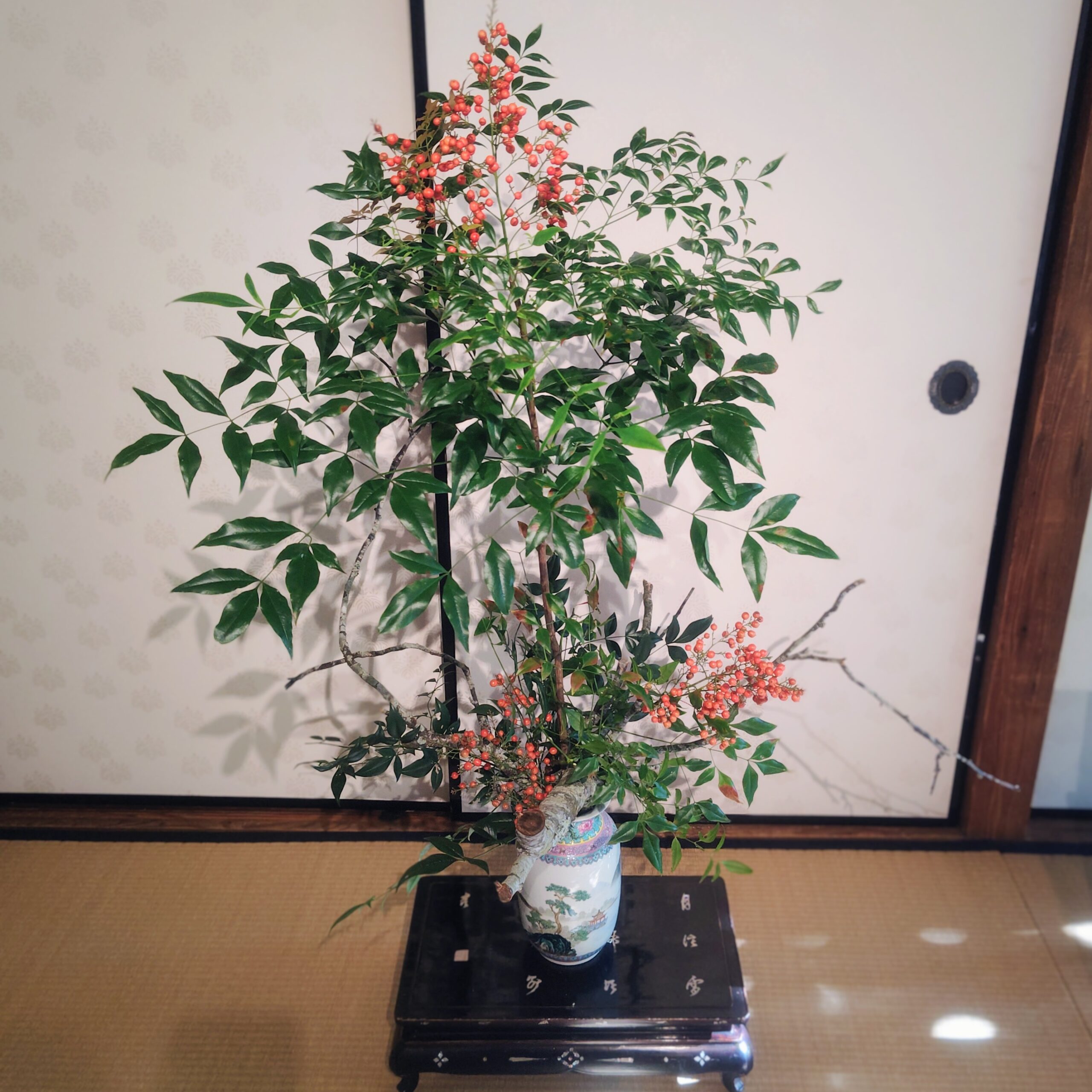 2025年11月28日 「子規庵で花を活ける」第6組の展示が始まりました。 |